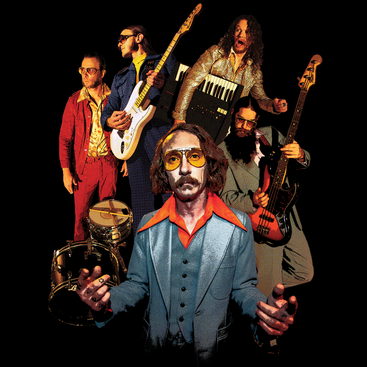 “Black Magic Flower Power has coined the phrases “Stoner-Disco” and “Desert-Boogie” to describe their unique blend of Disco, Pop, Psychedelic Rock & Funk. BMFP is a quintet comprised of synth guitar, clavinet, slap bass, wah wah, strings, horns, hook laden vocals and percussive disco beats. It’s impossible to not be transported back to the golden age of roller disco and classic cop shows when drinking their special acid laced Kool-Aid dialed into a radio station that plays Issac Hayes, The Cure, Beck, & Eagles Of Death Metal simultaneously. The band performs 150 + shows a year and resides on the outskirts of the Sonoran Desert when not on the road.”