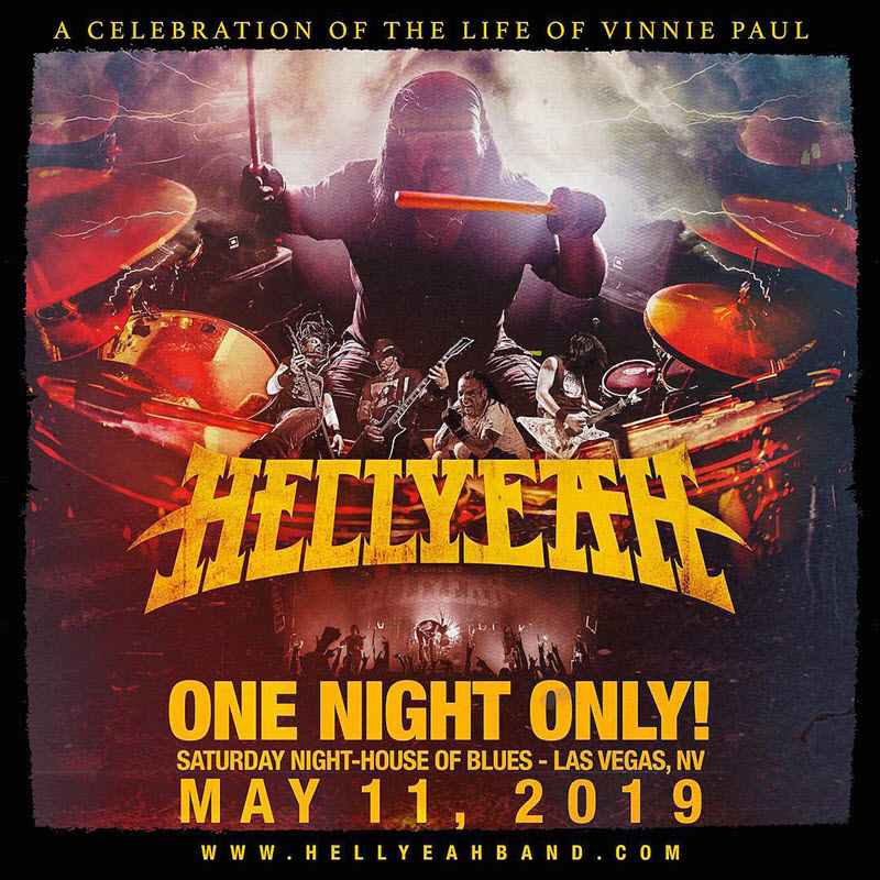 HELLYEAH: A Celebration of the Life of Vinnie Paul, will be held Saturday May 11, 2019 at the House of Blues in Las Vegas. This event will mark the first live performance of HELLYEAH since the tragic passing of their bandmate and brother last year.