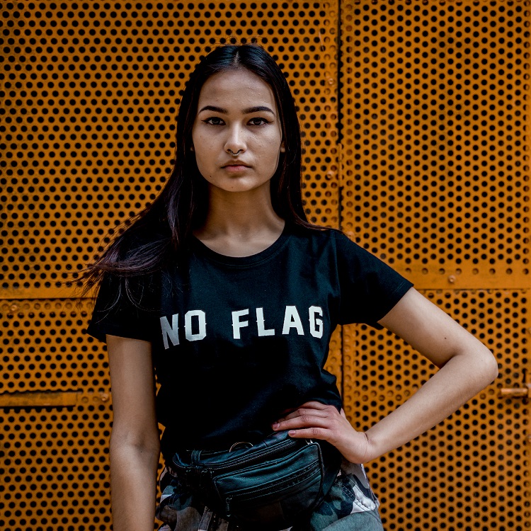 The No Flag Original was manufactured by an environmentally responsible t-shirt company: No Nasties.