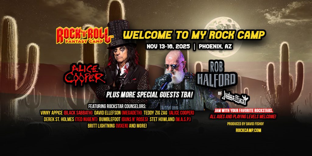Who’s ready to crank it to 11? Alice Cooper and Rob Halford, two legends who have lined up a massive fall 2025 tour, are teaming up for something truly epic: the Rock ‘N’ Roll Fantasy Camp in Phoenix, AZ, November 13-16, 2025!