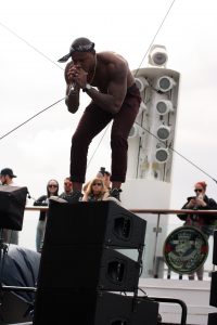 “Put your hand on the person in front of you and pray, ‘God, forgive me for fucking all the bitches, gambling all of my money and all the dumb shit I’ve done on this boat.’” Amen. That’s the kind of energy Houston, Texas native Hyro The Hero brings to the stage. Oh, wait, that’s not it. He also scales speakers, jumps off, sings at security, and runs into his band. After his deck stage show on Wednesday, Jan. 30th one member of the crowd said, “That’s energy right there. We should start every day off that way.” Hyro joined Wilson during their first show and Chad Nicefield returned the favor by crowd surfing during his. Hyro The Hero blends rock with rap and infuses it with his energy to create a fun, all over the place show.