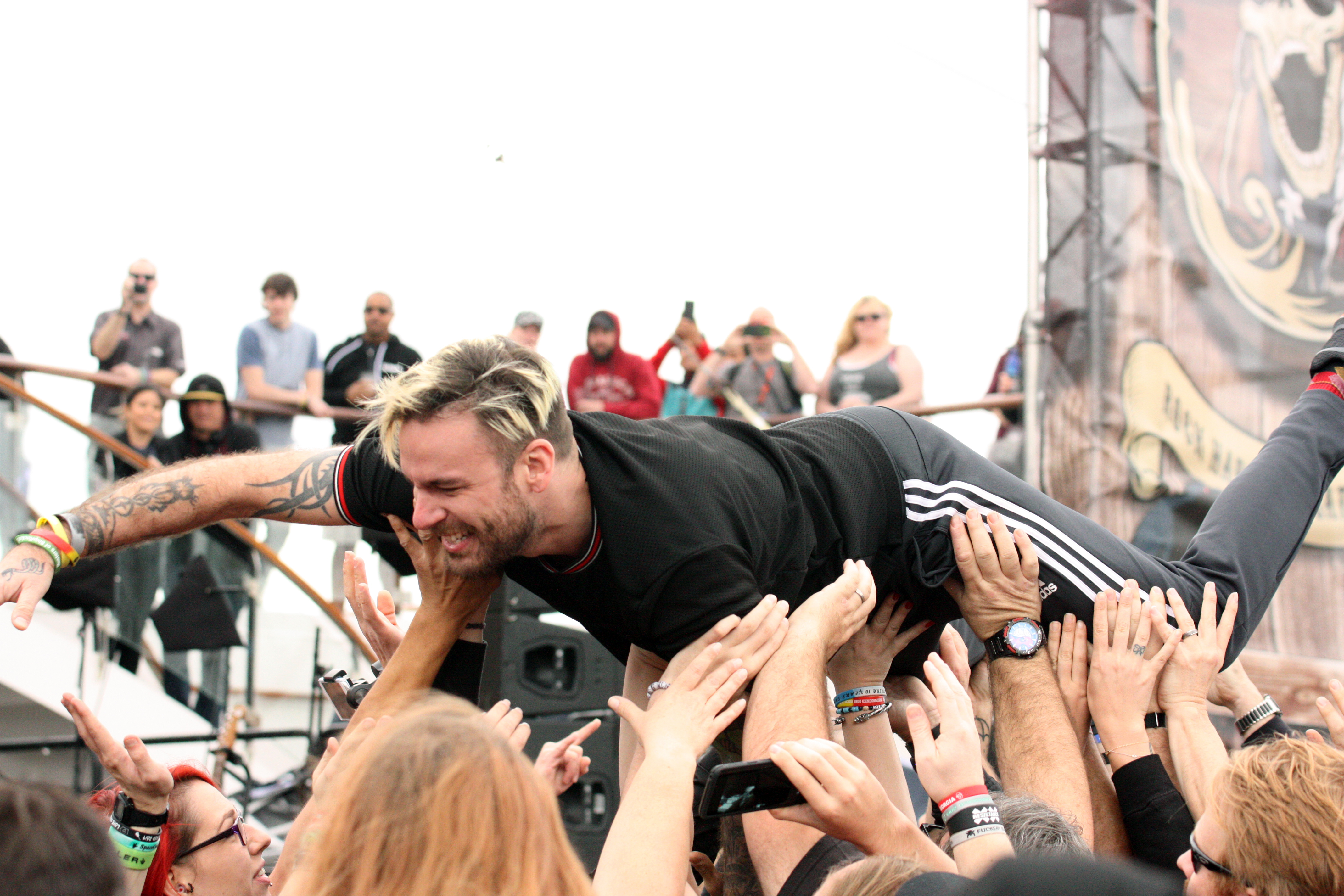 “You give me a reason to feel like I belong here,” is the first line in each verse of “House of Gold” and each time it was sung the lyrics could be figuratively seen connecting the crowd with Atreyu. Then, Varkatzas jumped back into the crowd and ran upstairs and downstairs on the deck hugging fans and personifying those lyrics as he literally connected himself to them. All of this while the strings shred onstage and Saller lost his mind on drums. They asked, “Who the fuck thought you could do this on a boat? You’re either having a good fucking time in this life or a bad time, but you can choose.” And if you chose to have a bad time during the second performance of Atreyu, then you had to work hard at it because they brought an intense, palpable energy and backed it up with a stellar performance that ended with “Blow.”