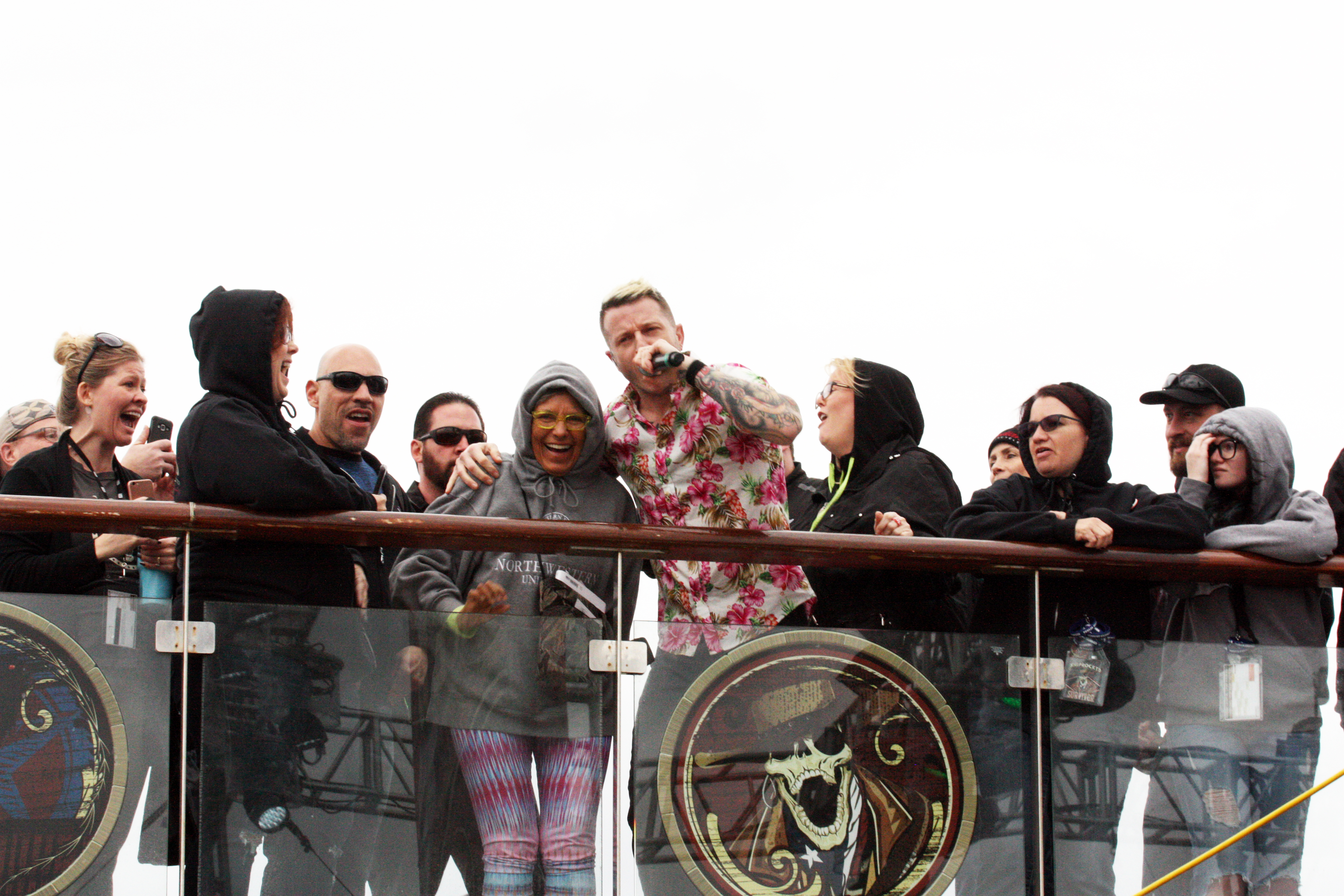 Some ShipRockers have been with Ask4 Entertainment since the first sailing in 2009. Some for more than six years (They make up the 666 club). Of course, those folks would be close and feel like family. Whether you’re a vet or a newb though, you’re a part of the ShipRocked family. This is evident in all of the bracelets, pics, and other swag that passes from hand to hand on the boat. Additionally, when seasickness hit from the unusual rocking due to the storm, guests took to the ShipRockers page asking for aid. Many people jumped on the thread with their room number and commands to come by. These posts would be followed up with posts of gratitude the next day; talking about how amazing the ShipRocked family is and how much better they feel. The love spreads to the artists too:– Davey Suicide credited ShipRockers with his spot on ShipRocked. He said, “We don’t have a song on the radio or a label. It was you guys!” Jesse Hasek of 10 Years reminded SRers that their first ShipRocked was in 2009 and said, “It’s a family and everybody knows everybody.” Lajon of Sevendust in talking about ShipRocked said, “I’ve never seen so many people come together…living, breathing, and loving each other. We don’t have concerts anymore. WE have family reunions.” Jacoby Shaddix of Papa Roach agrees with LJ and said as much as he walked through the crowd giving hugs and singing “American Dreams.” Did you get a selfie with Jacoby during this moment? Drop your favorite photos in the comments or tag #zrockworldtour on posts in Instagram or Twitter.