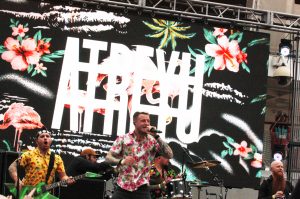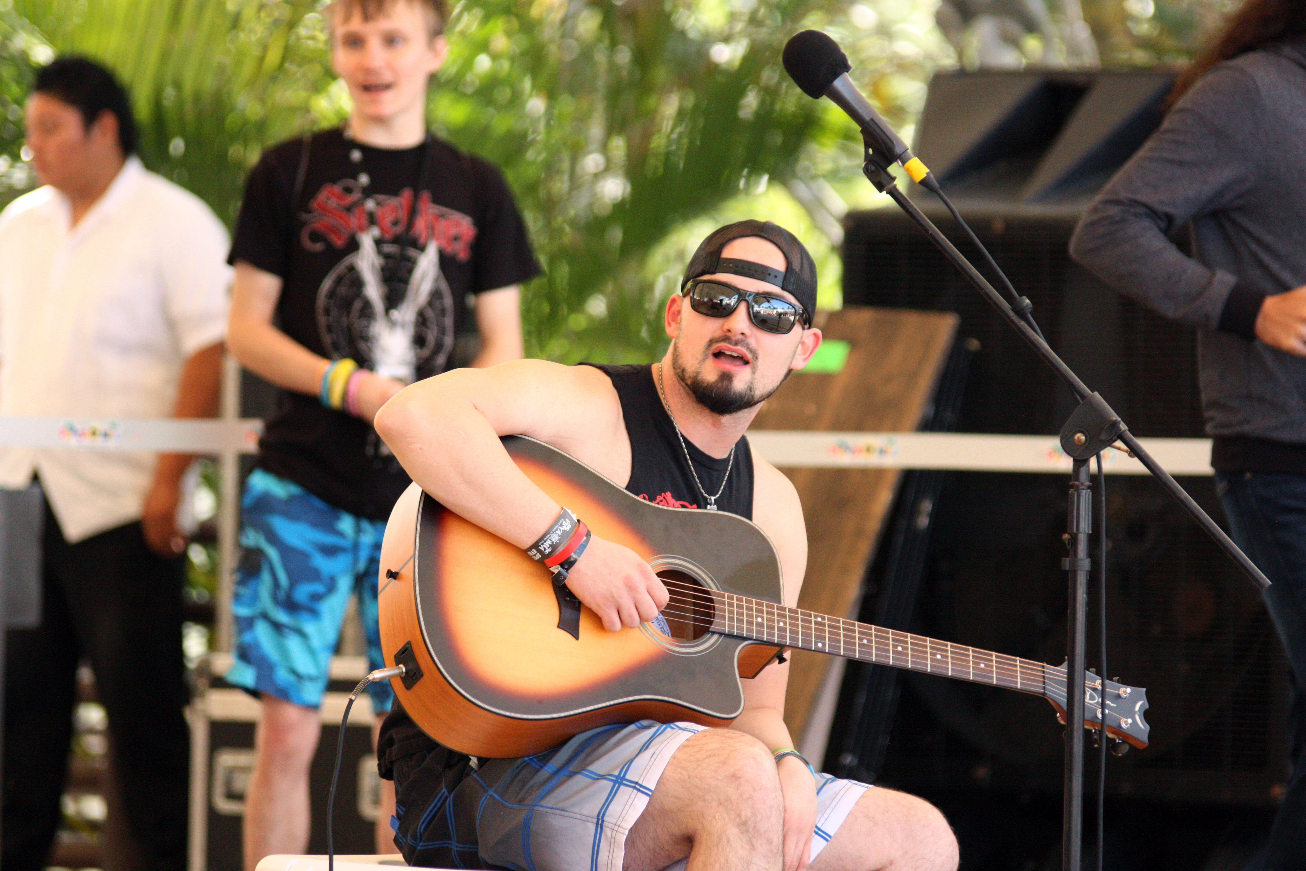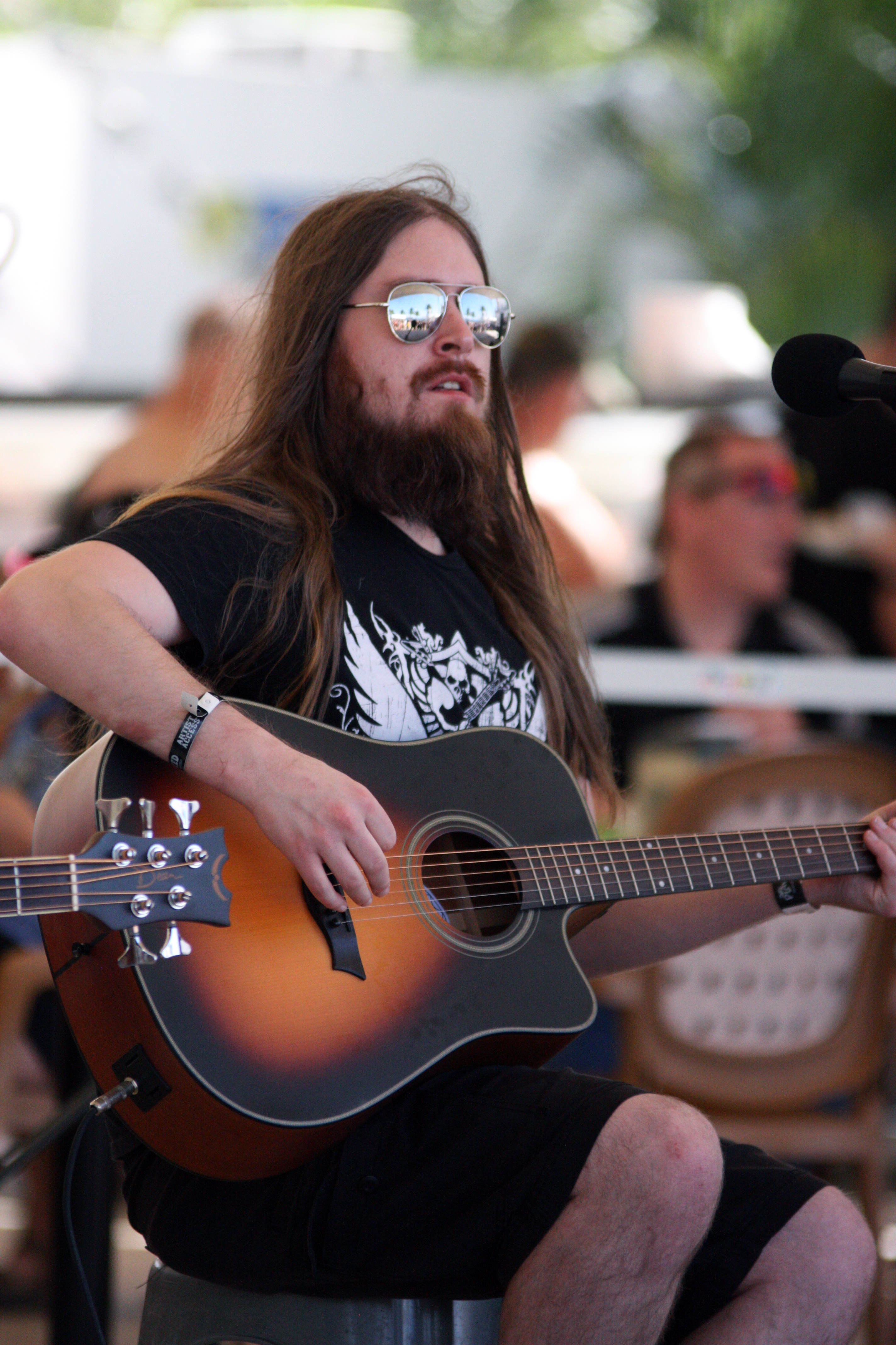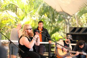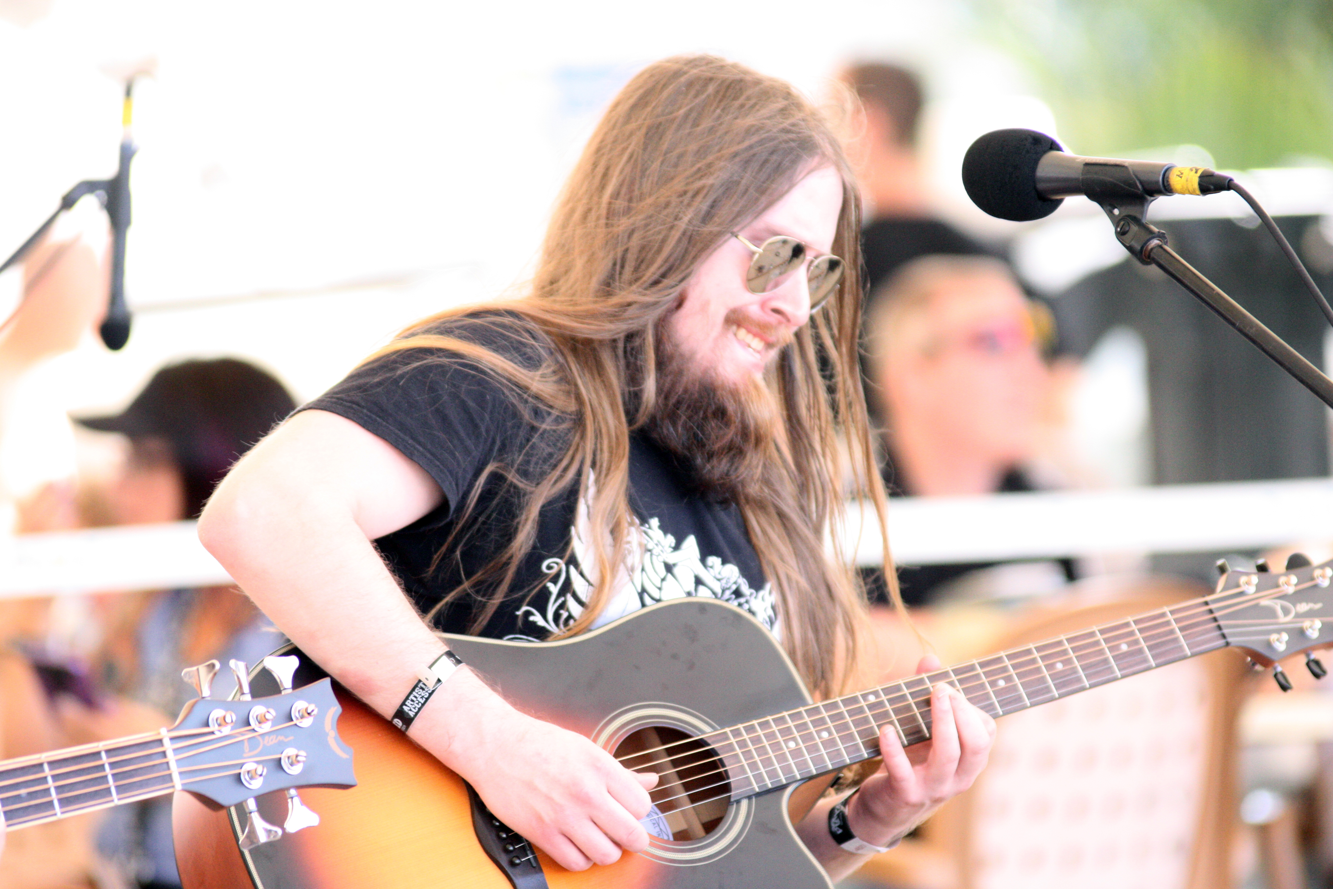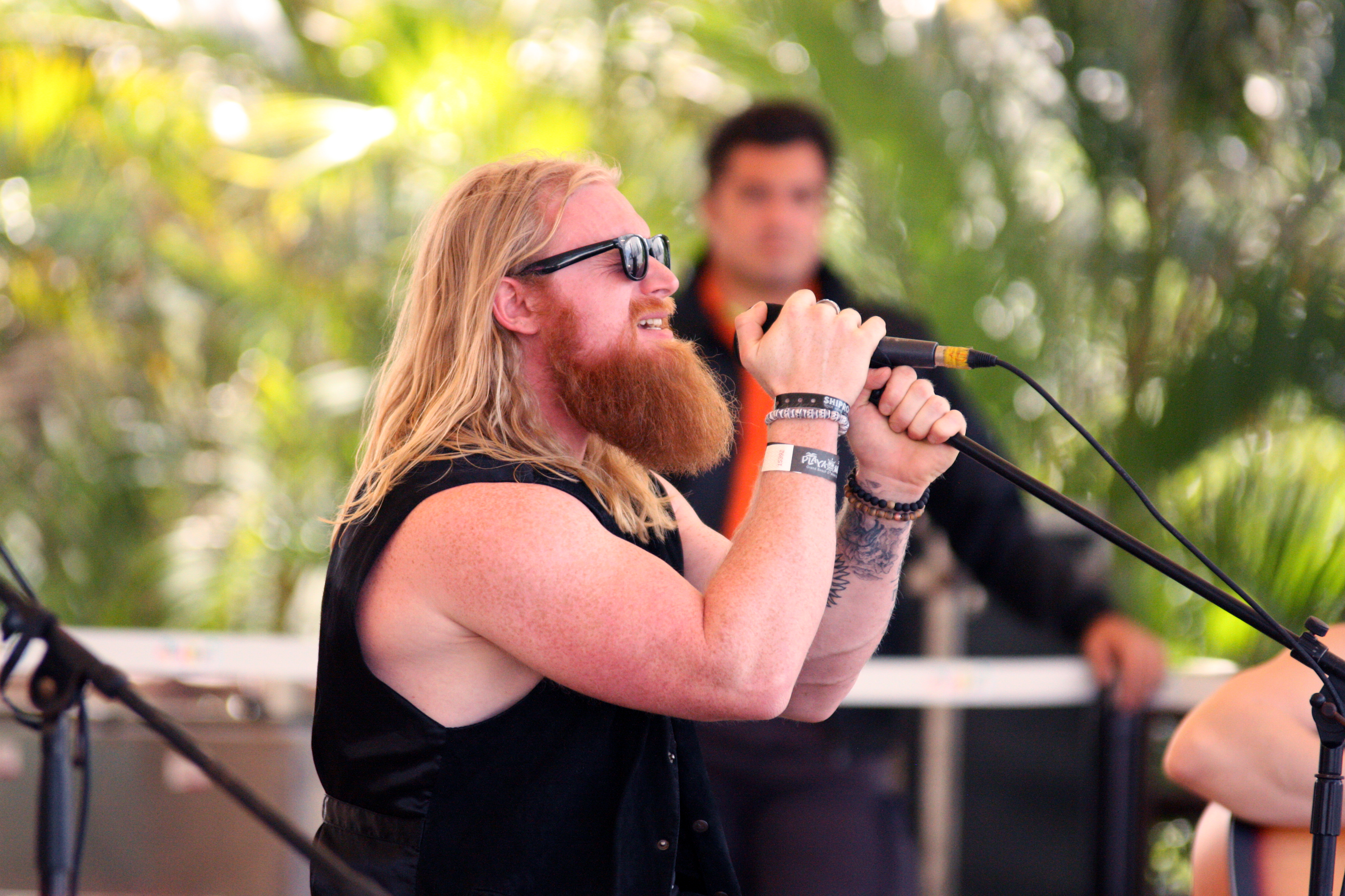 Blacktop Mojo kicked off their performances early. They played the first night of Saturday, Jan. 26th in the American Lobby. They were scheduled for two performances, but wound up playing three. The second and third performances were influenced and born out of one of those “be flexible moments.” The guys from Palestine, Texas were slated to play the beach in Cozumel on Monday, Jan. 28th. A big storm came in the night before (as many who were curled up in their room avoiding seasickness could tell you about) and destroyed the PA system. Instead of a fully plugged in set, they did an acoustic one that consisted of Alice and Chains, Stevie Ray Vaughn and original tracks like “Why.” Some fans walked up confused as their first beach set was wrapping up. There was some dilemma with ship time vs. local time and the band played a whole hour early. The Blacktop Mojo guys are so cool though, that they just played another set. At which point they had found their missing guitarist Chuck Wepfer. Vocalist Matt James interacted with the crowd, cheersing and chatting with them. Everyone was smiles during this sunny, beach performance.
