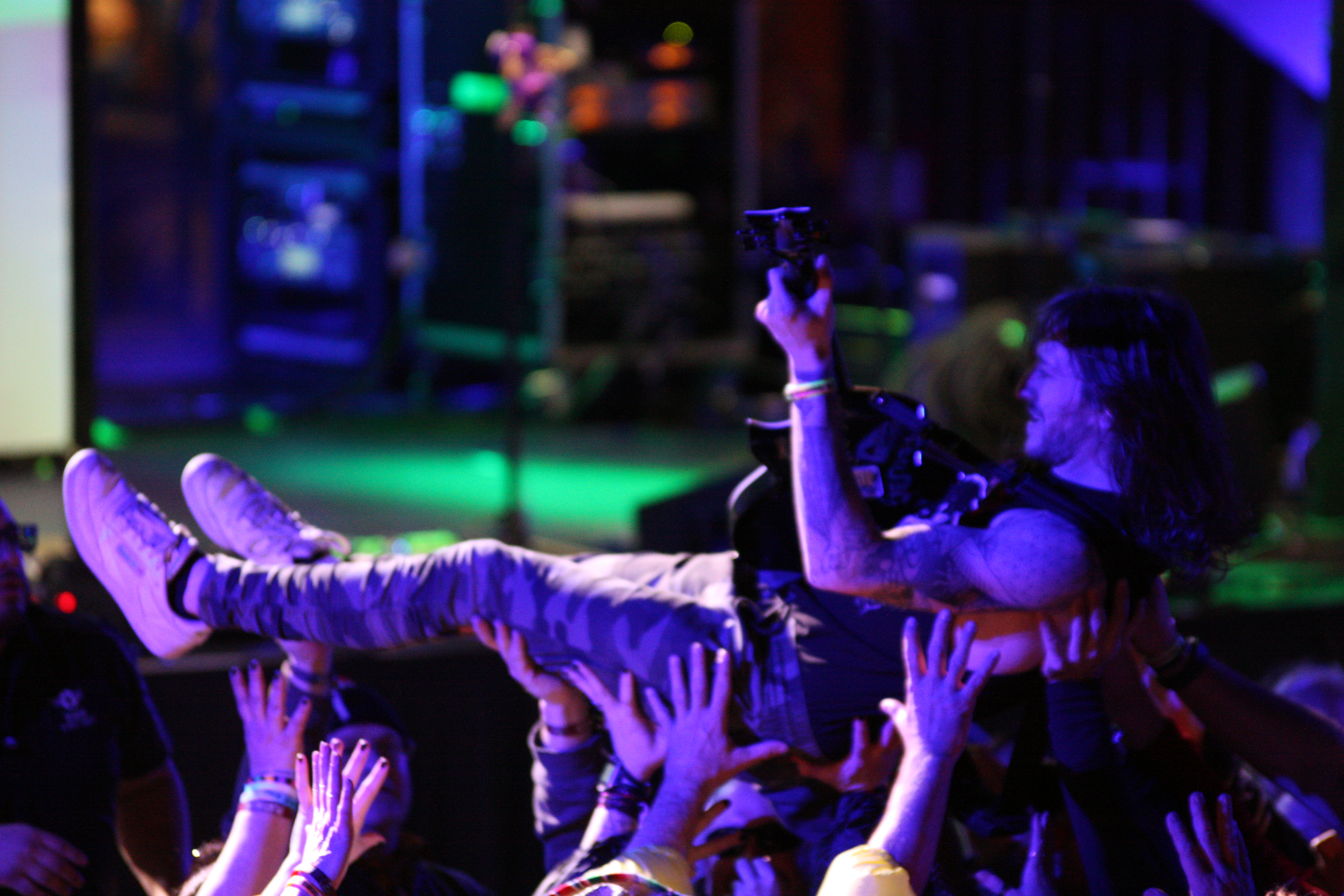 Between the “Shots! Shots! Shots!” and the typical calls to get up off your feet, Burkheiser soliloquized that, “Being away from home, home is where you make it… I think it’s funny because we’re on a floating hotel above mermaids and none of you know if it’s not true because you’re up here. So yea, mermaids.” Vanelerberghe affected the crowd when he shared that they lost their youngest crew member to suicide and moved them when he said, “No matter what you’re feeling you are worth more than you know. You are worth something…Reach out and talk to someone.” He dedicated “Crossroads” to their brother Kyle whom they lost.