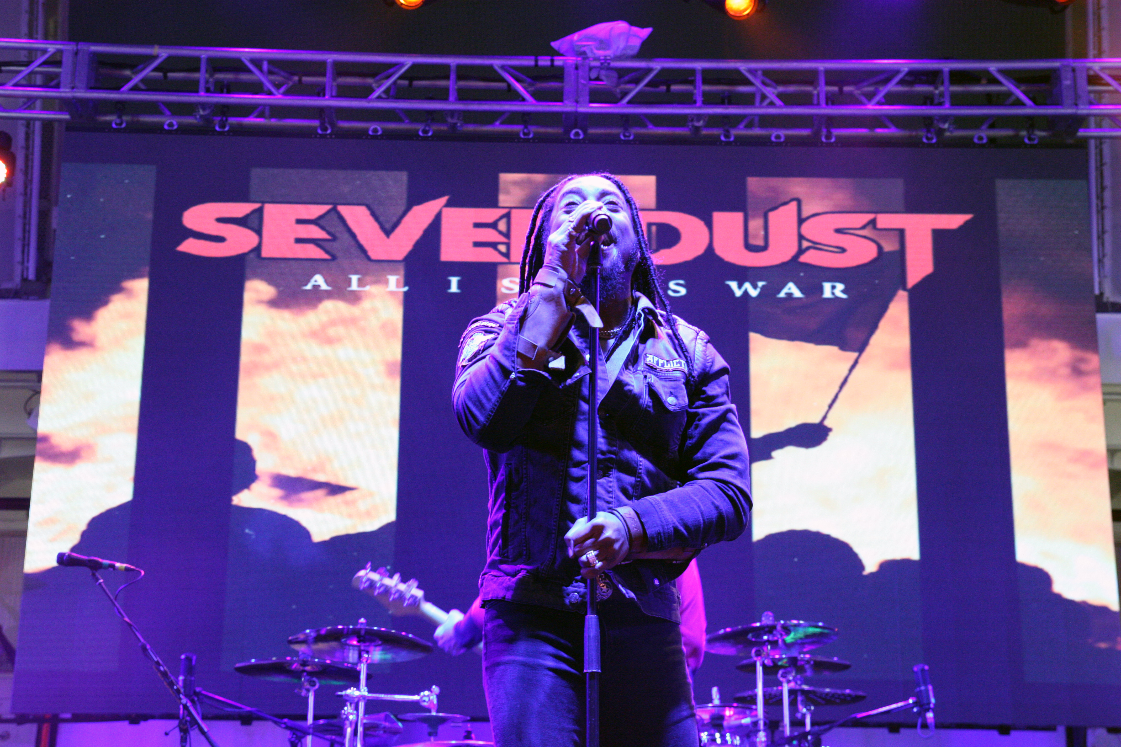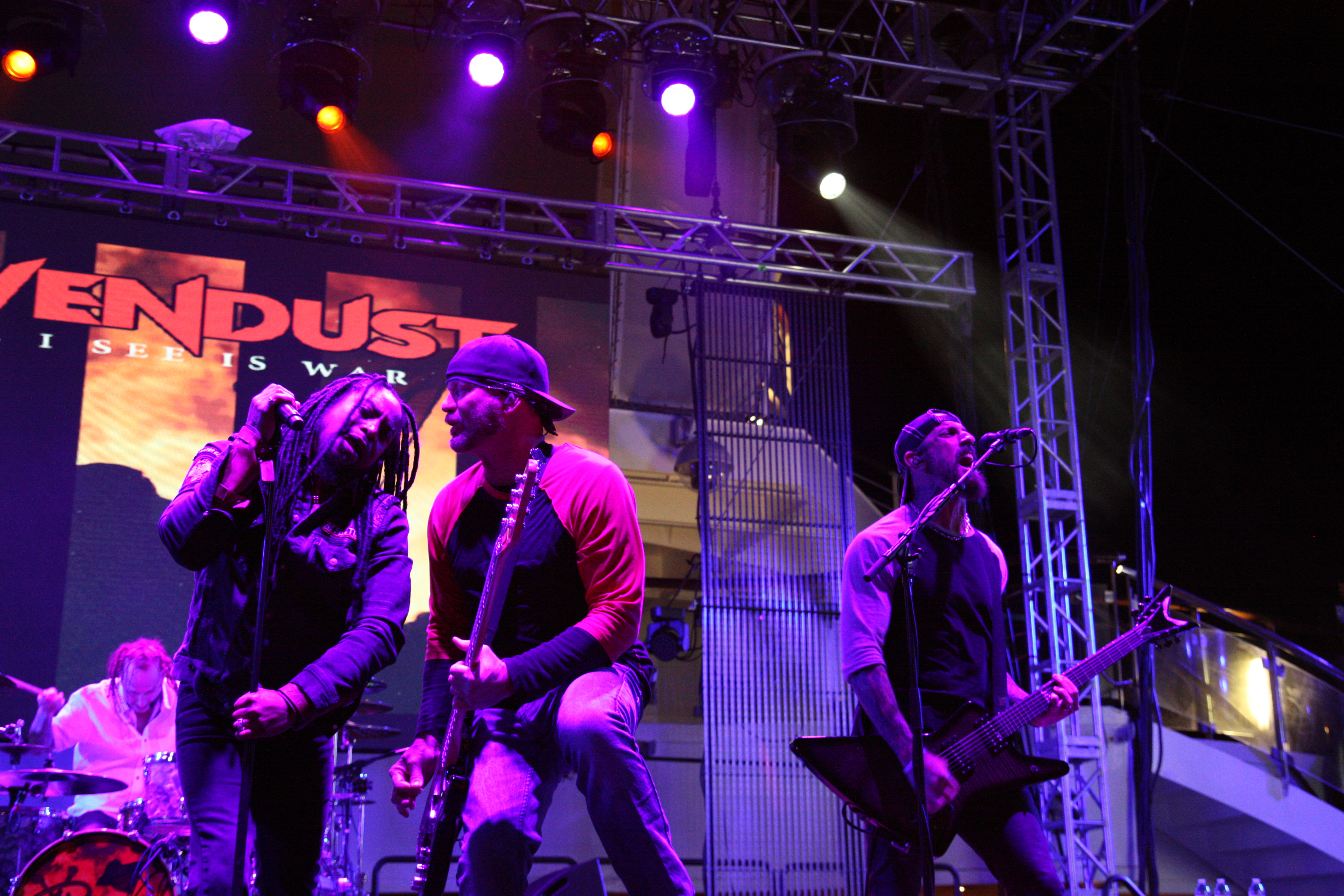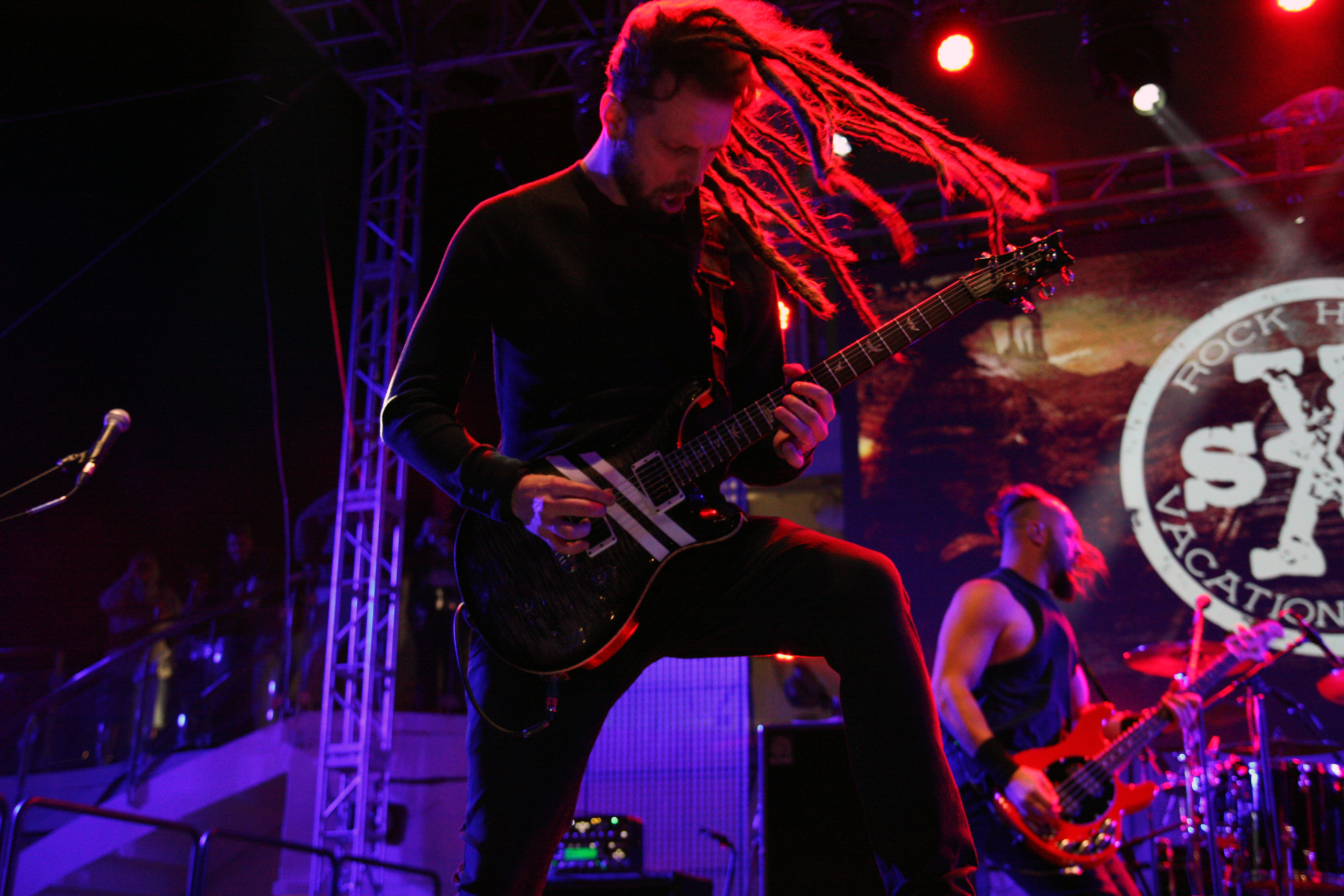 This was the ninth ShipRocked for the guys in Sevendust. On which vocalist Lajon Witherspoon remarked during their first performance, “I’ve seen so many people come together, living breathing and loving each other. We don’t have concerts anymore. We have family reunions!” This was right before they lead into “Will It Bleed” where most notably Clint Lowery and Lajon threw their bodies back and forth to the music with smiles on their faces; a true representation of the love felt in one of their reunions. Their first show was full of older tracks. They played “Terminator,” (1997) “Too Close to Hate,”(1997) “Shine,” (2001), and “Enemy” (2003) on the deck stage, Saturday, Jan. 26th.