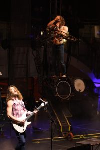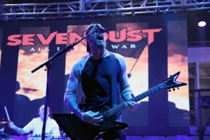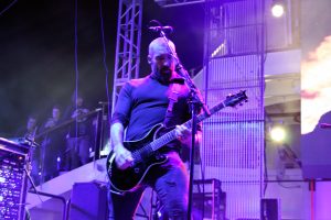 those words are sources of strength for everyone in the crowd. (Interesting fact: The band’s first-ever live performance of Fade In/Fade Out was on the deck stage at ShipRocked 2018 last year). Of course, this first performance included Hawkins ascending high in the air on his scorpion. He gave shout outs to Clint Lowery and Sevendust, which was great foreshadowing to the second show.