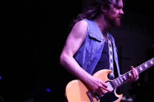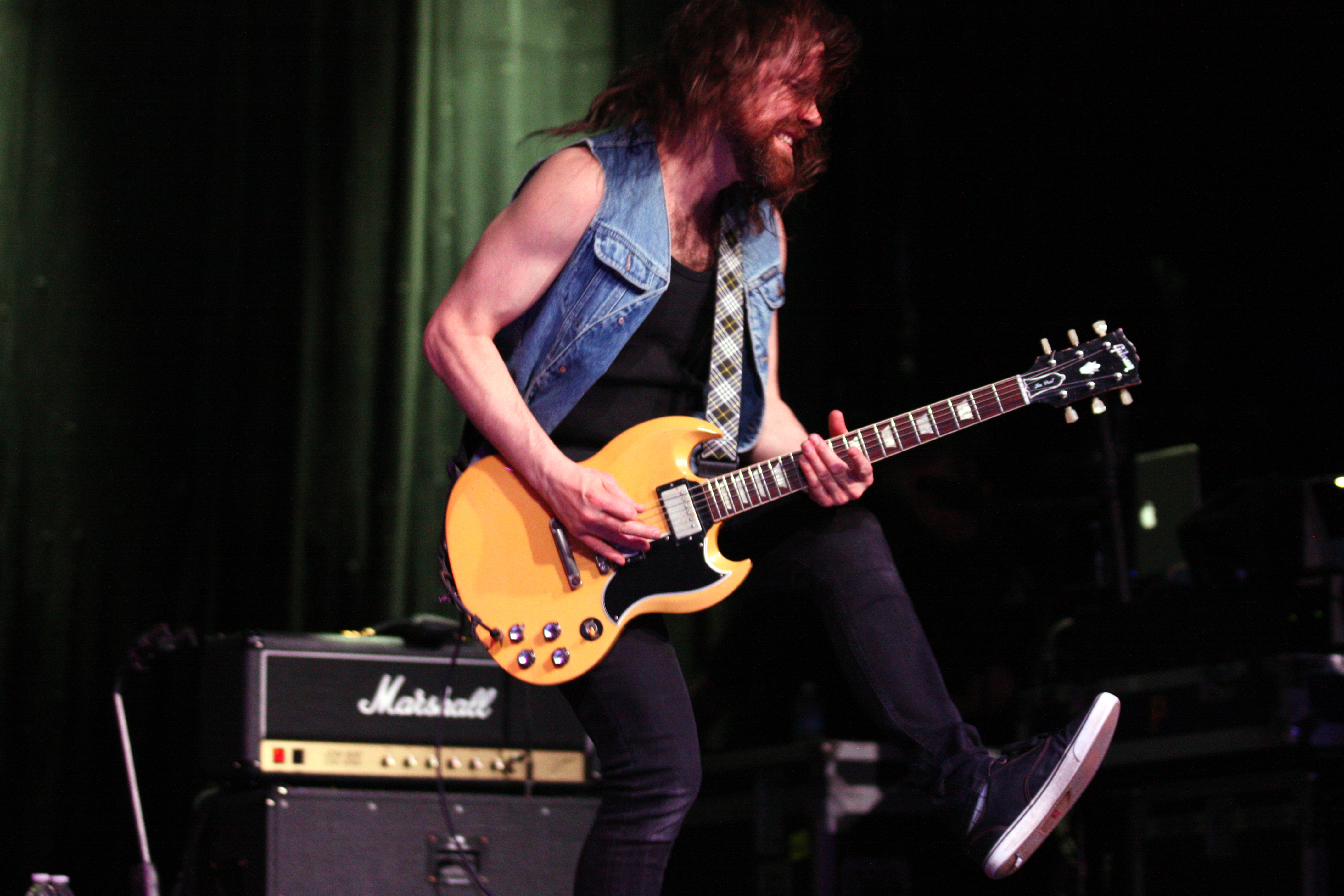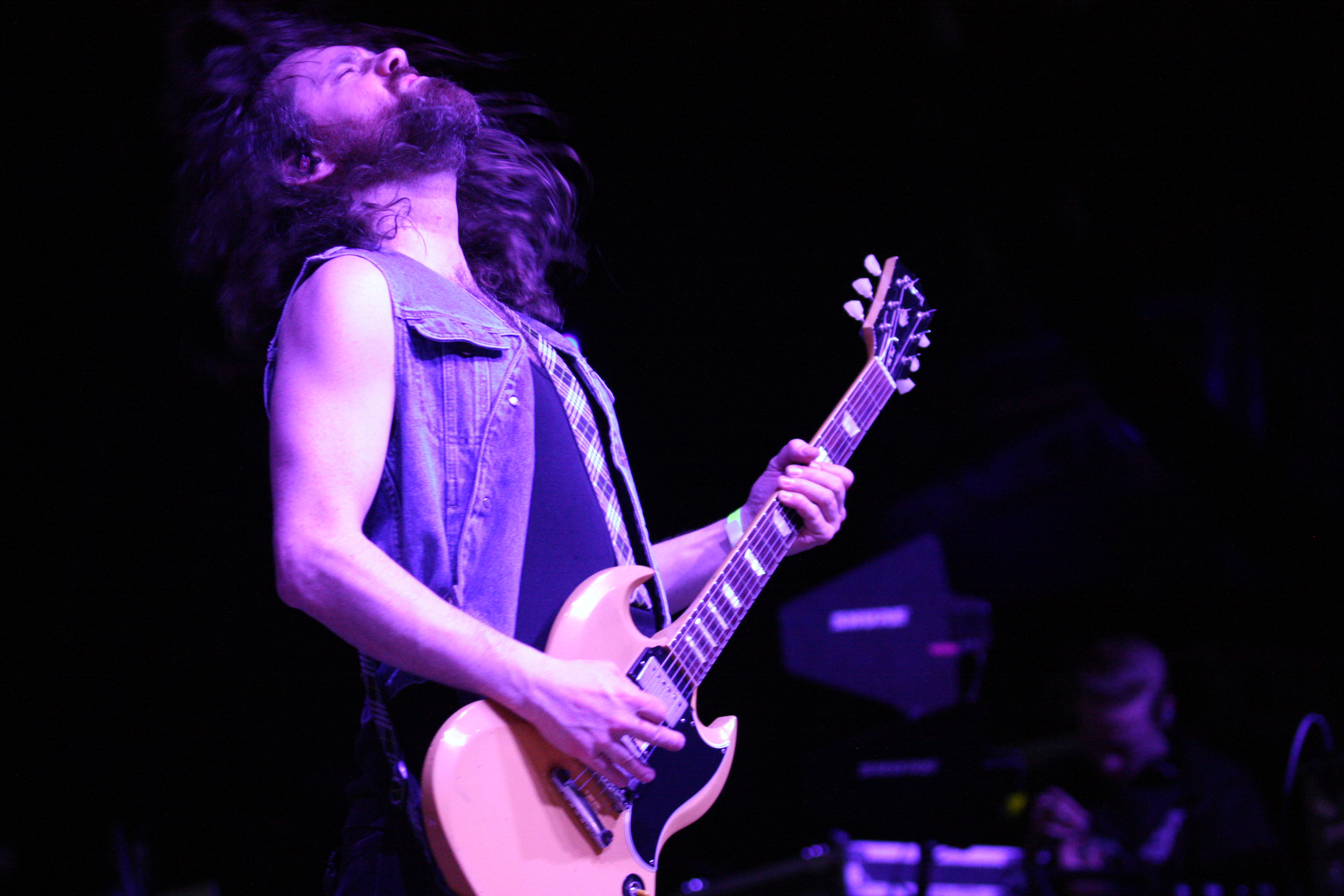 The guys joked between each other every time they would debut a new song. One time Katz said, “This is a big deal for us. We’ve never played it before.” To which Morrow expanded on by saying, “The drunker you are the better this will sound.” Who knows how true that it is, but it sounded fantastic. Each. Song. Whether the track had been on previous set lists or not, each one lifted from the guys like a phoenix rising and spun around the room enrapturing the audience. They opened with “Soap” (2015). This is one of those tracks that makes listeners want to take action, but what action? The bass and the drums at the beginning make you want to dance. When Katz sings, “Sometimes I cannot be respectable,” and purses/pouts his lips as he sings the last part of “So-ap,” you kind of want to have sex. The riff during the verses inspires more dancing. Then, when Morrow speeds up the tempo in the breakdown and starts shredding, you kind of want to kick things.