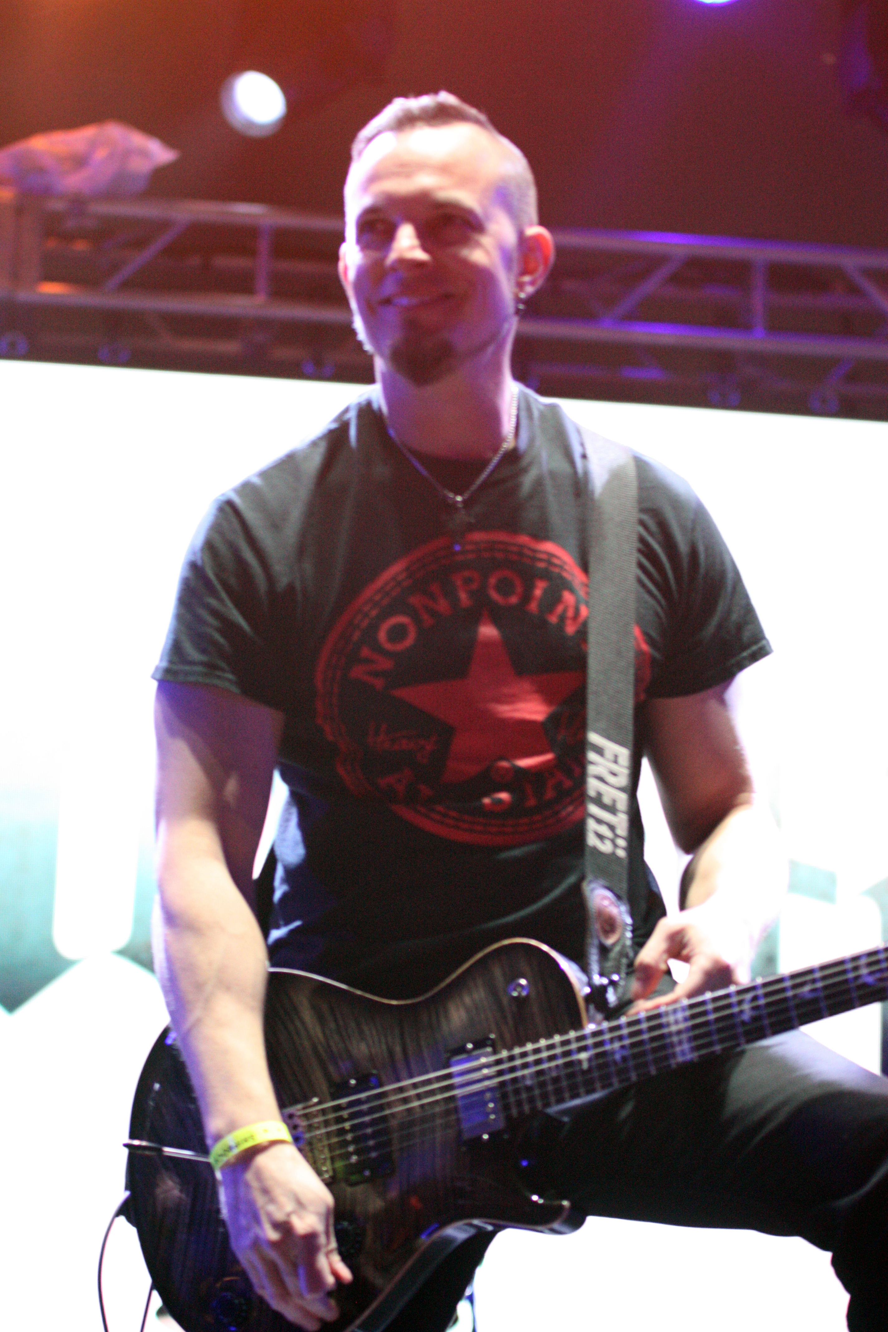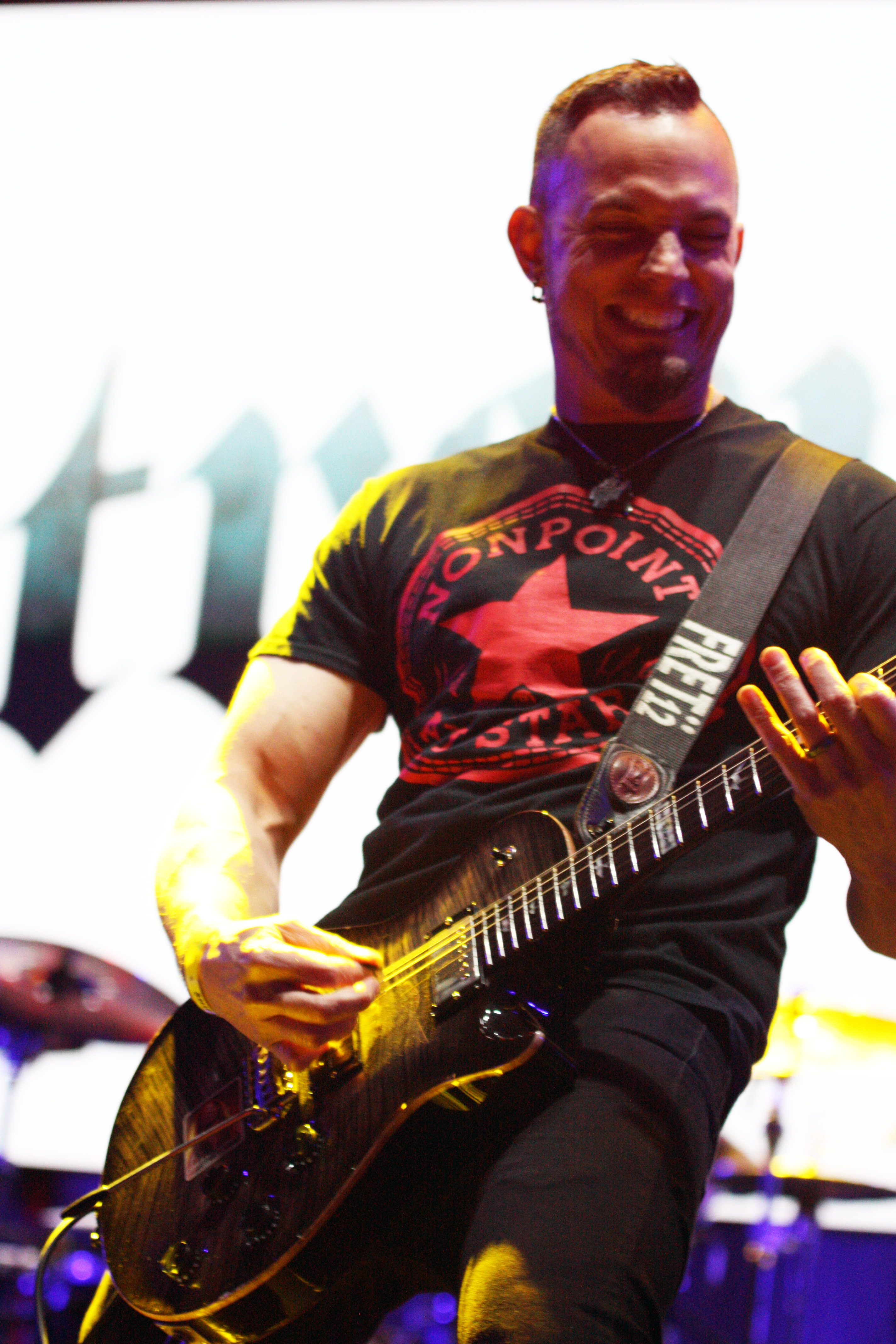 Mark Tremonti is known most for his stunning guitar playing, but he can sing. In “Catching Fire” his voice stood out against Tanner Keagan’s bass and Ryan Bennett’s drums so beautifully. His hands though, move so fast in most songs. It’s a marvel to watch. He shred low on the fretboard during “My Last Mistake” and when he shred during “Bringer of War” he would lean forward and backward slowly with his shred like a dance. He moves with the guitar so intuitively it’s like the guitar is a living, breathing person that he’s been dancing with for decades knows exactly how to move and bend with it to show off its strengths.