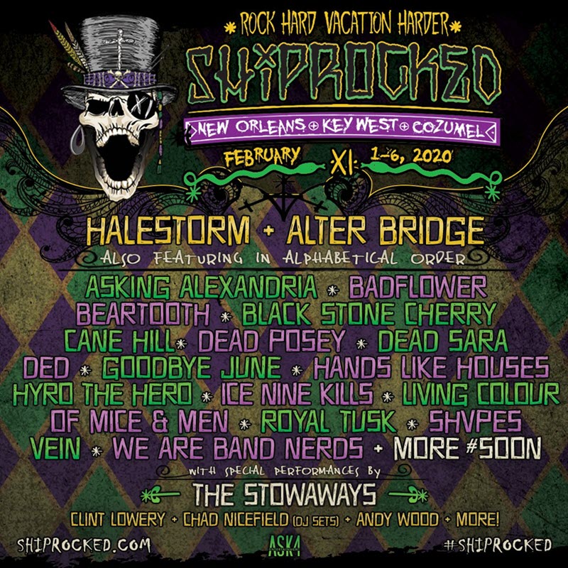 The ShipRocked 2020 lineup includes Halestorm, Alter Bridge, Of Mice and Men, Asking Alexandria, Badflower, Beartooth, Black Stone Cherry, and more as ShipRocked goes to 11 February 1-6, 2020 onboard Carnival Valor. Departing from New Orleans, with stops in Key West and Cozumel, the ultimate rock music cruise vacation features performances from over two dozen artists.